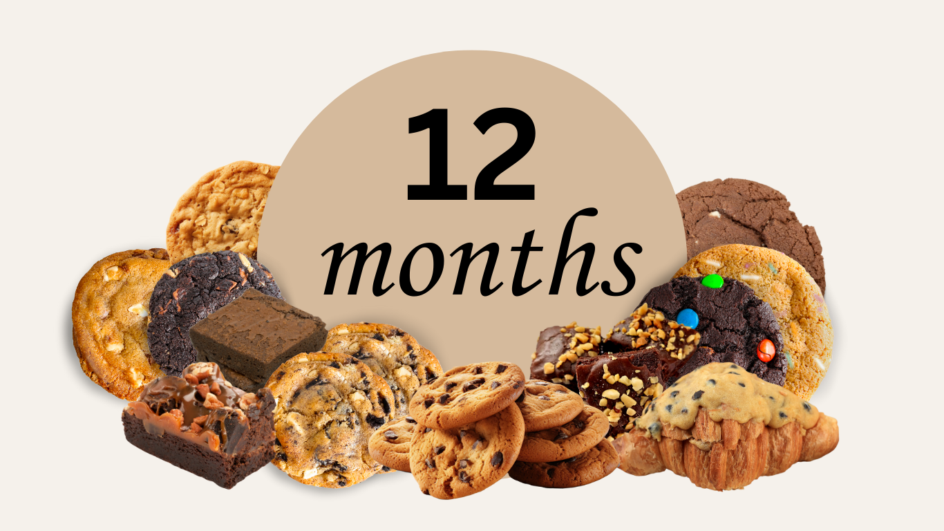 Cookie of the Month Club selections include: custom designed sugar cookies, gourmet cookies, mini's*, crookies, holiday or new flavor cookies, and brownies listed in the collections. Recipient will receive Baker's choice of one half dozen cookies each month.